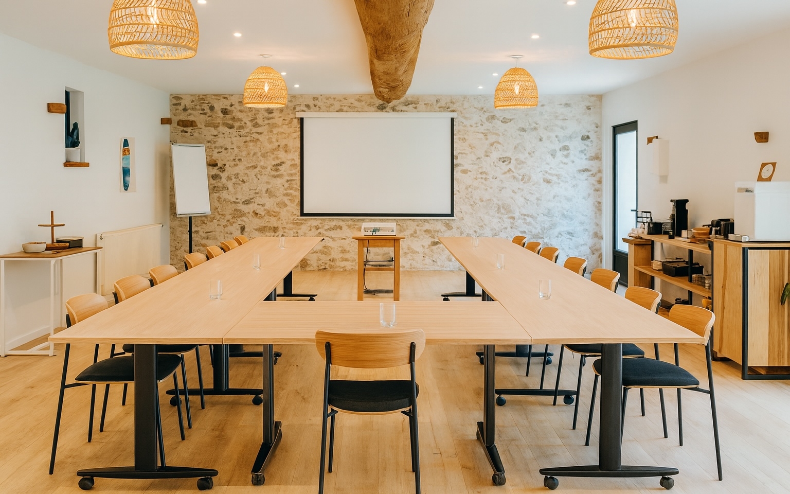 - Une salle de réunion de 55 m², lumineuse et équipée pour accueillir jusqu’à 14 personnes.
